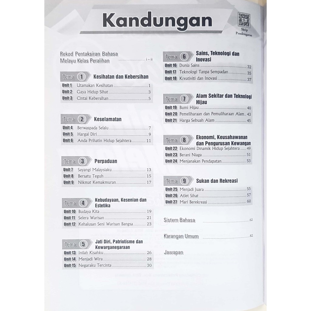 Setiap unit mengandungi kemahiran mendengar dan bertutur, kemahiran membaca, kemahiran.